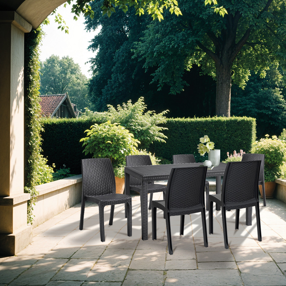 Set mobilier de grădină Leziter Hellda 6+1, grafit, masă 150x90 cm + 6 scaune