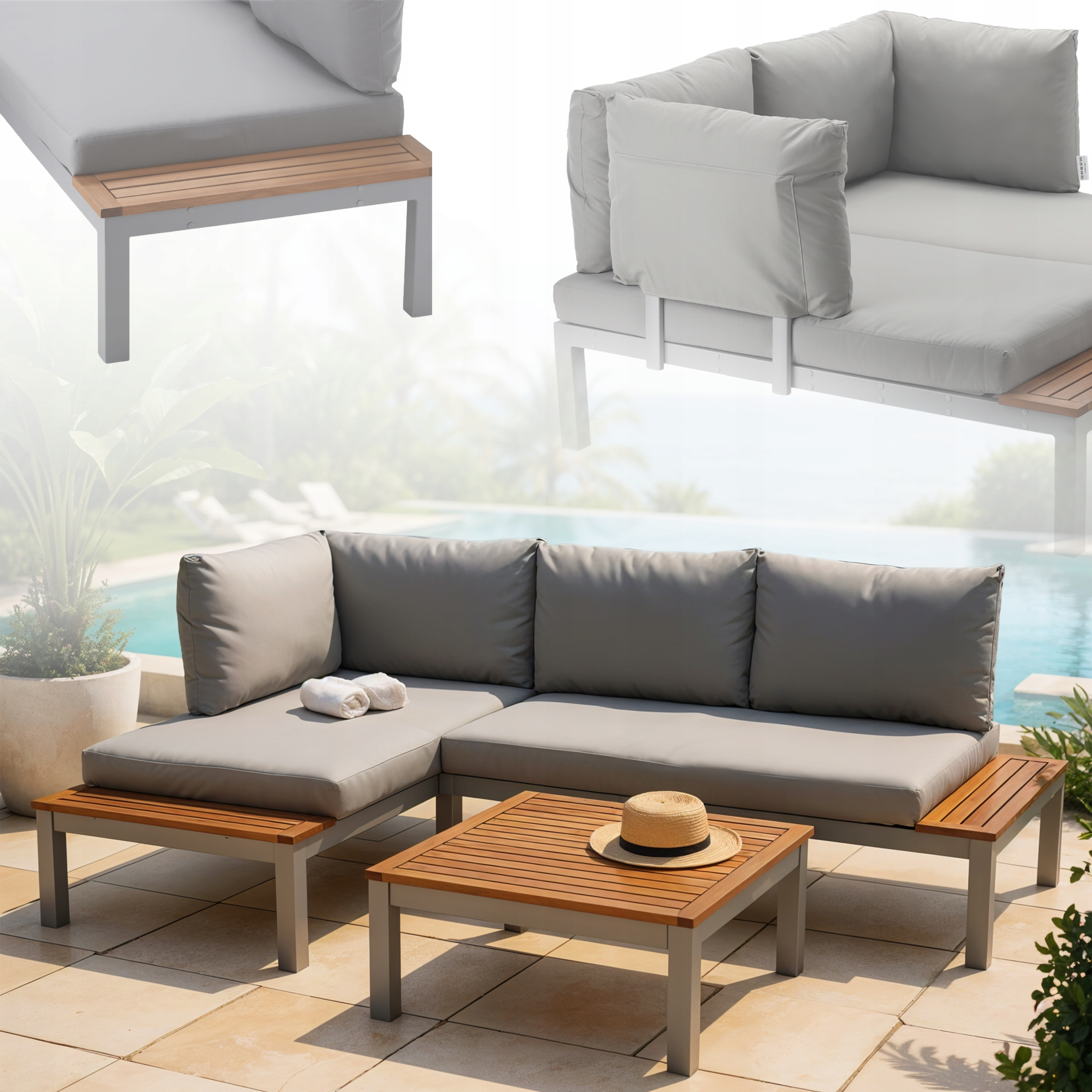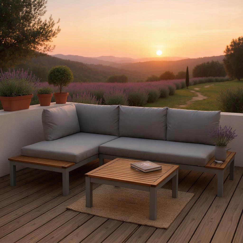 Transforma terasa, balconul sau gradina intr-un colt de relaxare cu setul mobilier de gradina modular Bohito. Cu un design modern, linii curate si combinatie eleganta de aluminiu si lemn de eucalipt, acest set este potrivit pentru momente de odihna, cafeaua de dimineata sau serile petrecute alaturi de cei dragi.