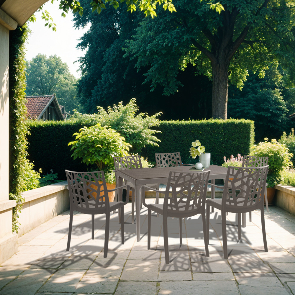 Setul de mobilier de grădină Odini 6+1 este alegerea ideală pentru mesele în aer liber, reuniunile de familie și momentele de relaxare pe terasă, în curte sau lângă piscină. Cu un design modern, într-o nuanță elegantă de cappuccino, acest set mobilier grădină oferă confort, stabilitate și suficient spațiu pentru 6 persoane.