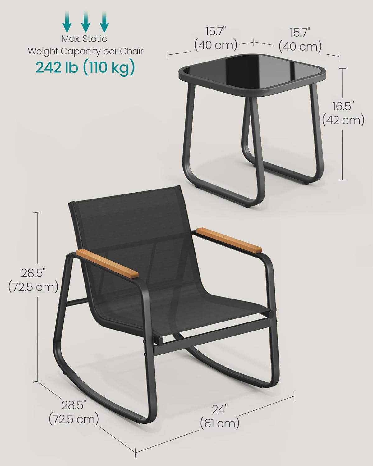 Set mobilier de gradina SONGMICS cu 2 scaune balansoar si masa, negru