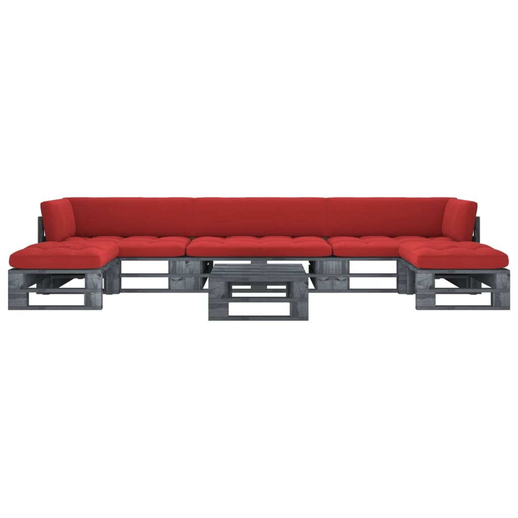 Set mobilier din paleți cu perne, 6 piese, gri, lemn pin tratat GartenMobel Dekor