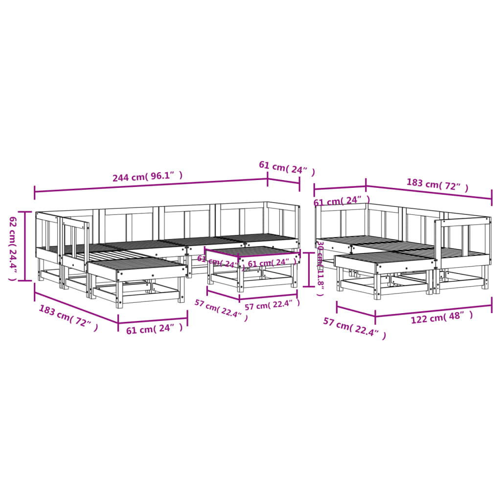 Set mobilier grădină, 11 piese, lemn masiv de pin GartenMobel Dekor