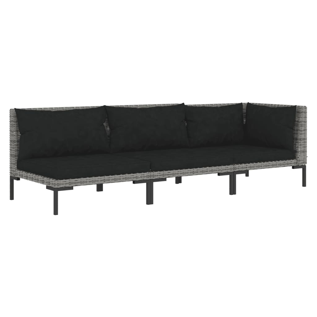 Set mobilier grădină 3 piese, gri închis, poliratan semi-rotund GartenMobel Dekor