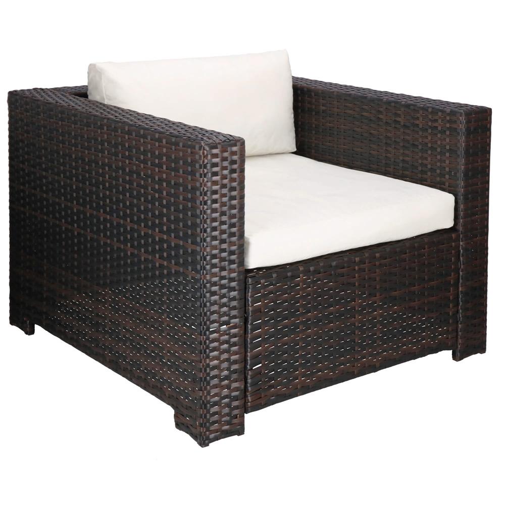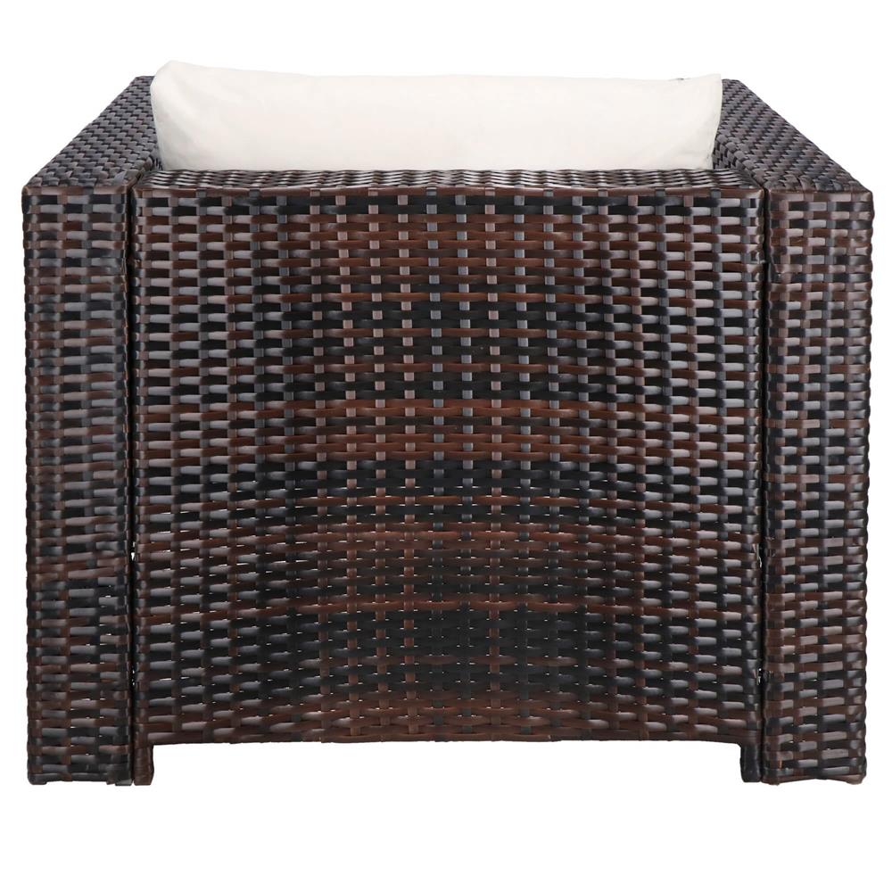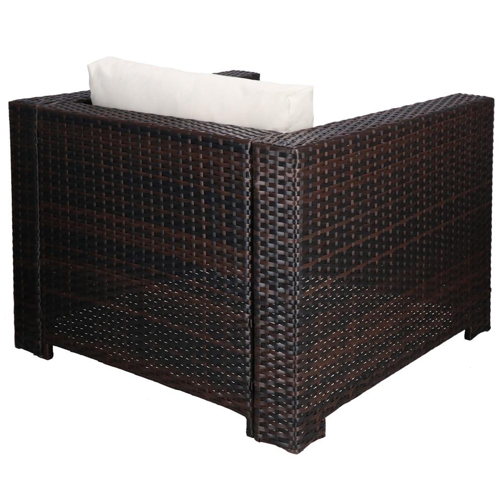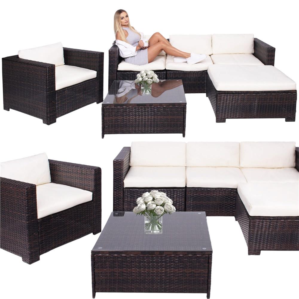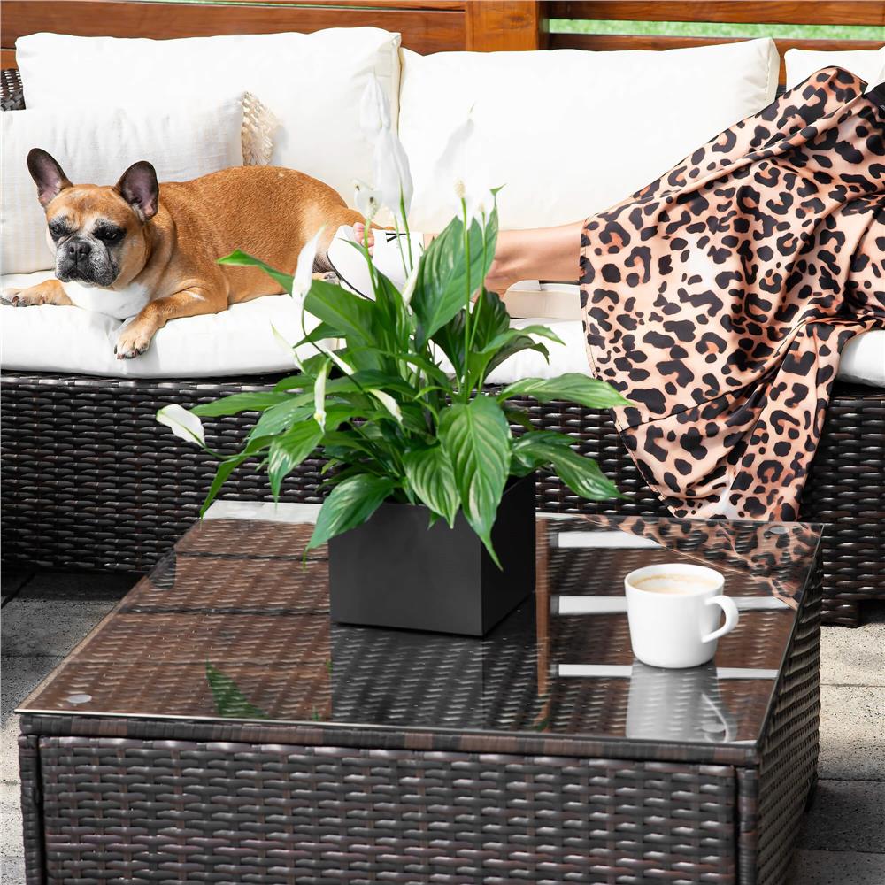 Specificatii tehnice Material: technorattan, sticla securizata, poliester, spuma PP Culoare: maro, crem Numar piese: 6 Dimensiuni module: Modul colt: 62 x 70 x 80 cm (H x L x A) Modul drept cu spatar: 62 x 60 x 80 cm Modul patrat: 33 x 79 x 79 cm Dimensiuni sezut: 60 x 70 cm, inaltime 32 cm Dimensiuni masa: 33.5 x 74 x 74 cm Blat sticla: 73.5 x 73.5 cm Grosime sticla: 5.5 mm Dimensiuni fotoliu: 62 x 80 x 80 cm Scurta descriere Setul de mobilier pentru gradina din technorattan este alegerea ideala pentru relaxare in aer liber. Designul modular permite configurarea flexibila in functie de spatiu, iar pernele confortabile si masa cu blat din sticla completeaza perfect zona de lounge. Este potrivit pentru terasa, gradina sau balcon. Caracteristici principale Design modern si elegant pentru exterior Structura din technorattan rezistent la intemperii Masa cu blat din sticla securizata Ideal pentru gradina, terasa sau balcon Usor de intretinut si curatat