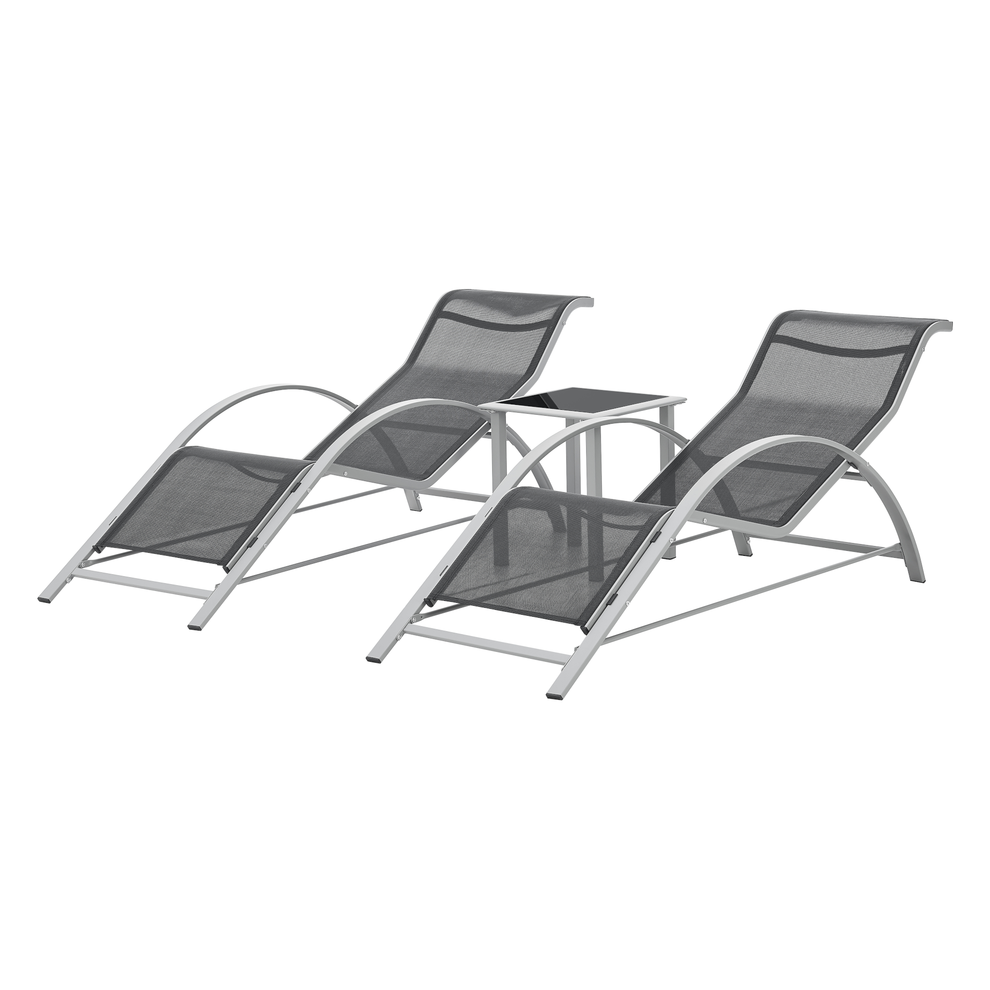 Set mobilier gradina Binetto 2 sezlonguri 1 masa gri/negru [en.casa] HausGarden Leisure