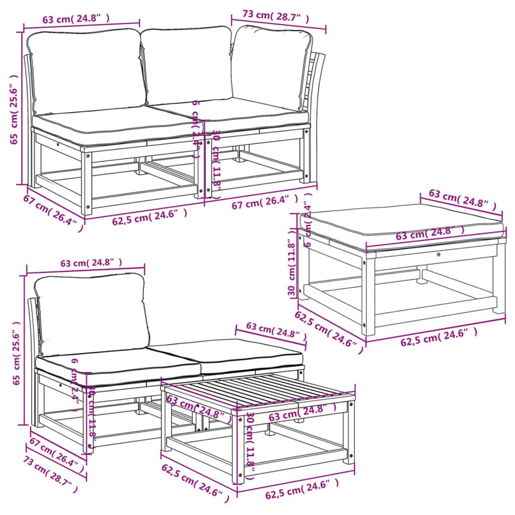 Acest set de mobilier pentru grădină, din lemn, cu perne, are un design elegant și este o alegere excelentă pentru relaxare și distracție, în grădină sau pe terasă.