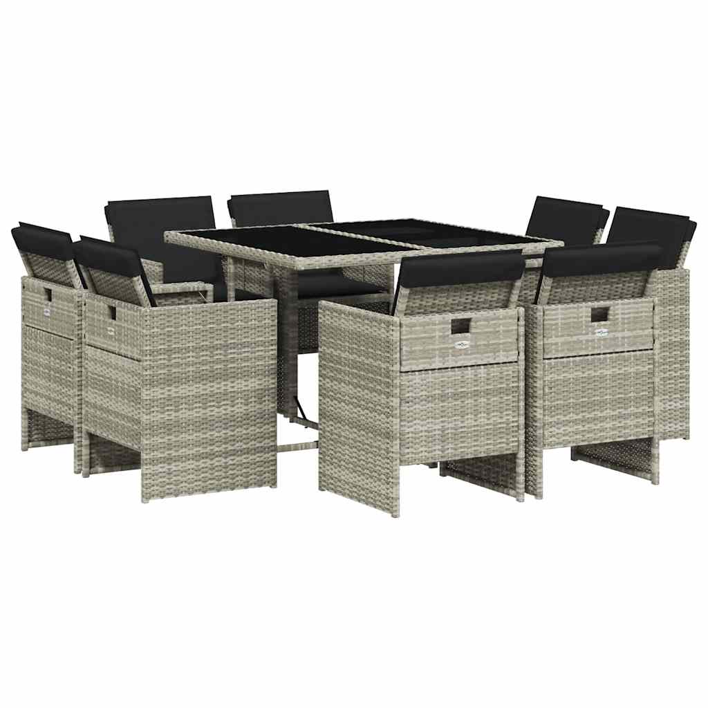 Set mobilier grădină cu perne, 9 piese, gri deschis, poliratan GartenMobel Dekor