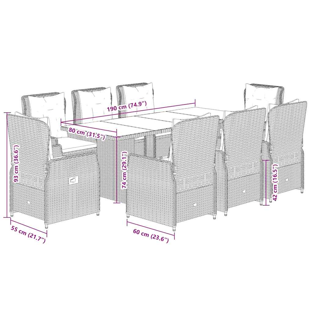 Set mobilier grădină cu perne, 9 piese, gri, poliratan GartenMobel Dekor