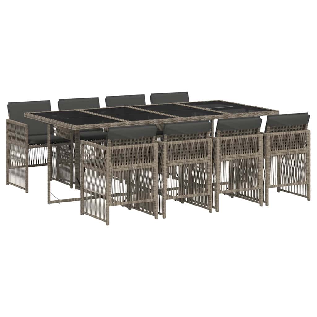 Set mobilier grădină cu perne, 9 piese, gri, poliratan GartenMobel Dekor