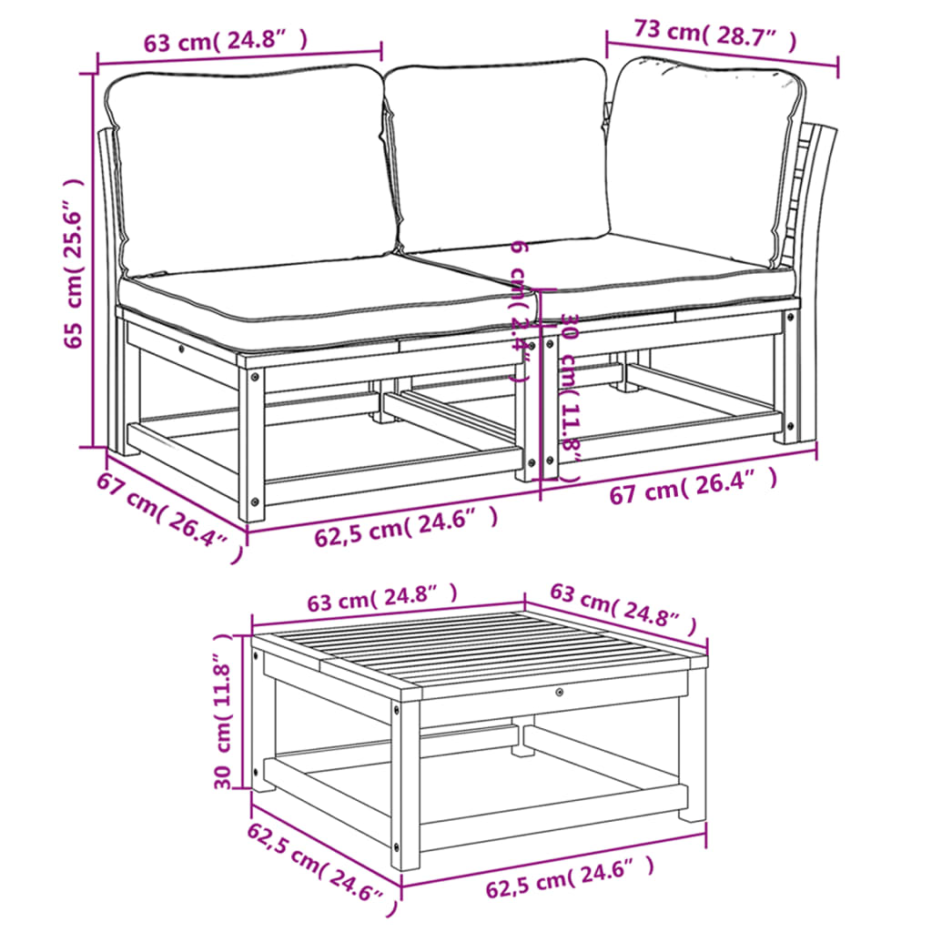 Acest set de mobilier pentru grădină, din lemn, cu perne, are un design elegant și este o alegere excelentă pentru relaxare și distracție, în grădină sau pe terasă.