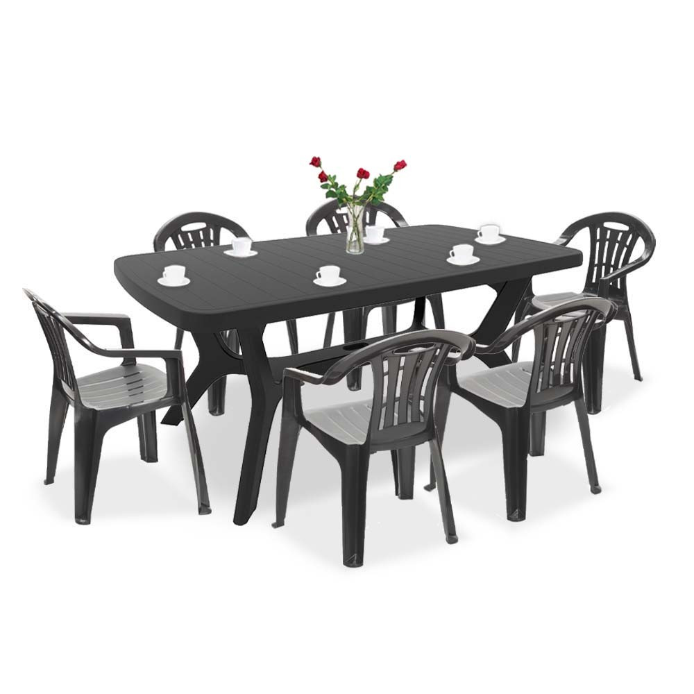 Set mobilier grădină Curver Balorca 6+1, masă + 6 scaune, grafit