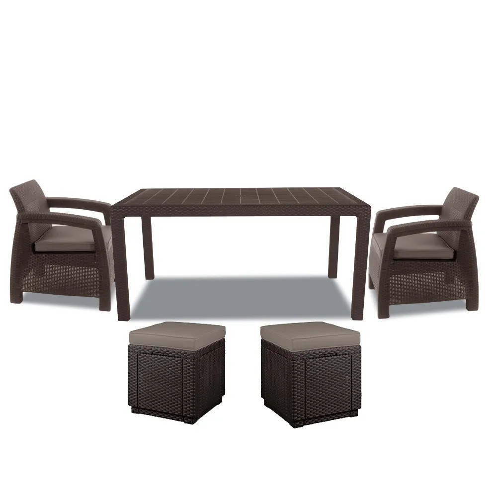 Set mobilier grădină Curver Corfu Duo Cube maro, 2 fotolii, 2 pufuri și masă