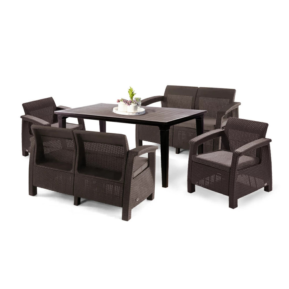 Set mobilier grădină Curver Corfu Fiesta III, 6 locuri, masă Futura, maro