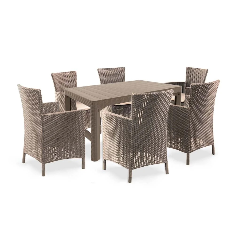 Set mobilier grădină Curver Iowa 6+1 cappuccino, aspect ratan, masă reglabilă