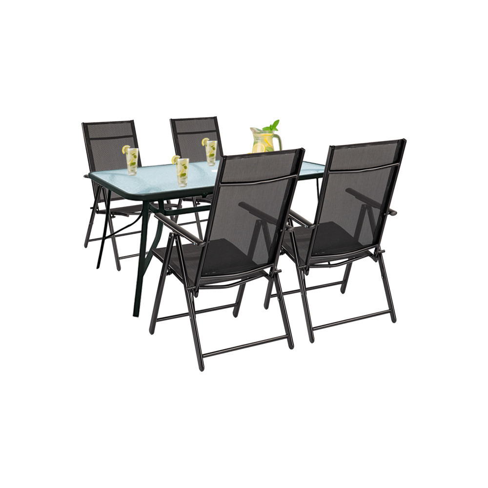 Set mobilier grădină Leziter Nadin 4+1 negru, masă sticlă 150x90 și 4 scaune pliabile