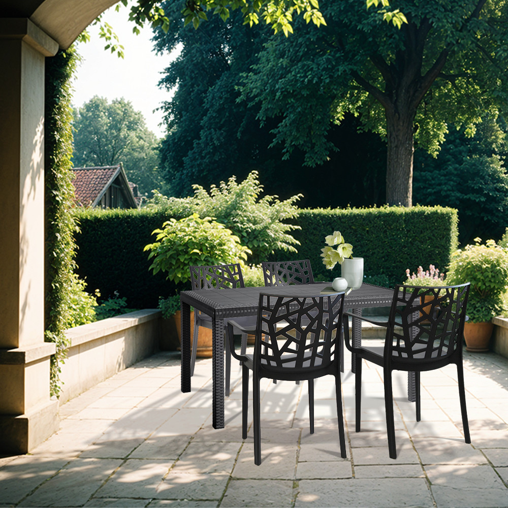 Set mobilier grădină Leziter Violina 4+1, grafit, masă 150x90 și 4 fotolii cu cotiere