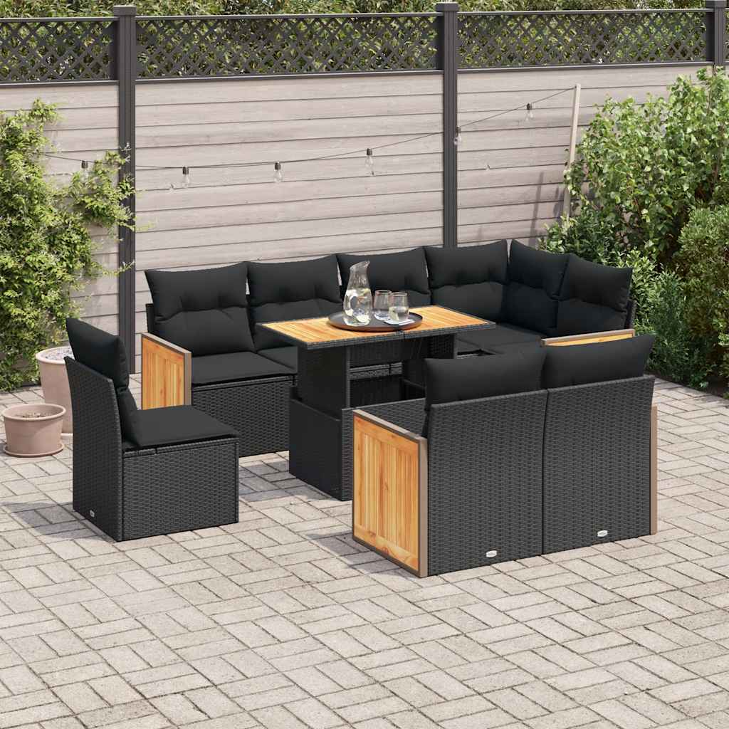 Set mobilier grădină perne 9 piese negru poliratan/lemn acacia GartenMobel Dekor