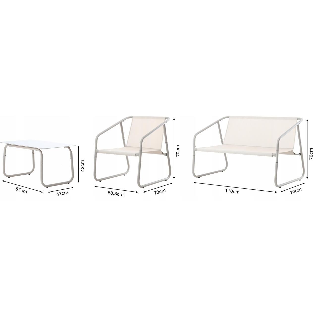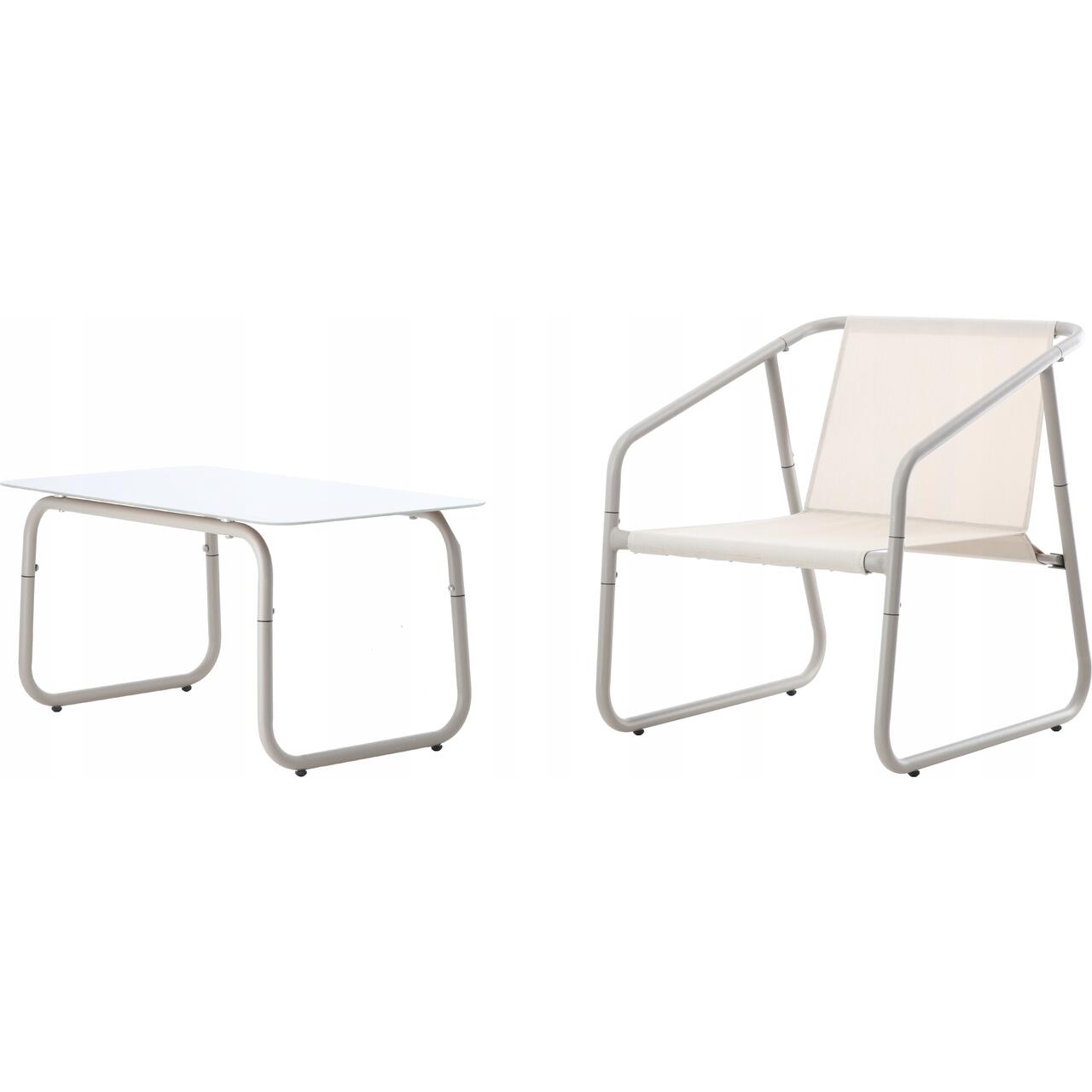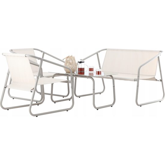 Set mobilier gradina/terasa, bej, otel, textil, 1 masa, 2 scaune, 1 canapea, Soffi