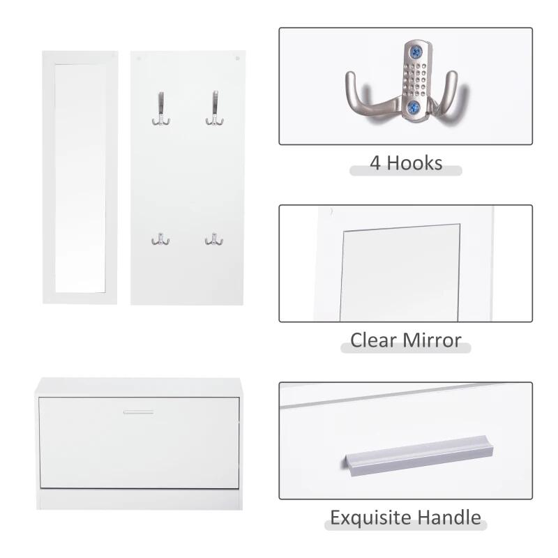 Set mobilier hol, pal, cu pantofar, cuier, oglinda, alb, 3 piese