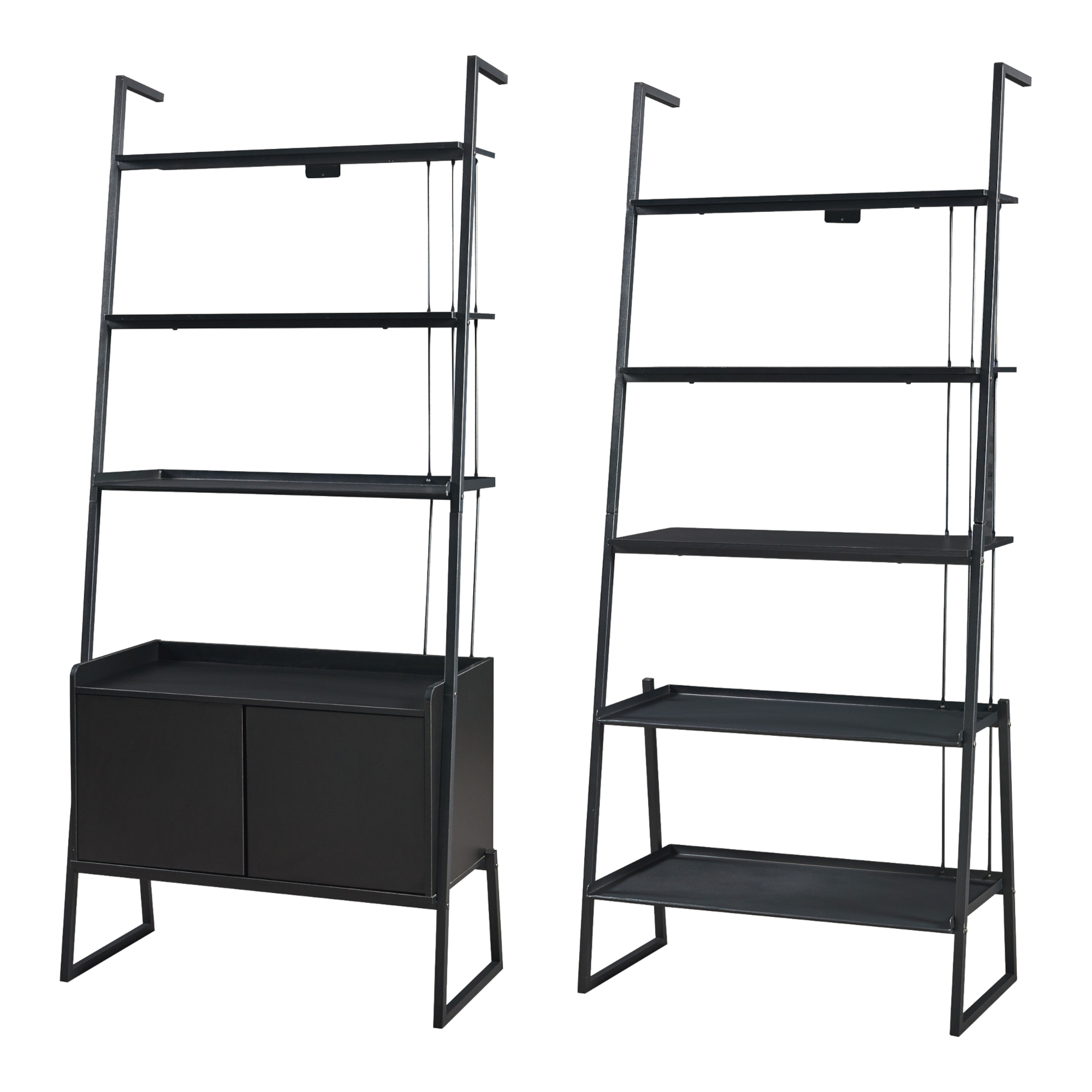 Set mobilier Storfjord 2 piese cu biblioteci tip scară și dulap, negru