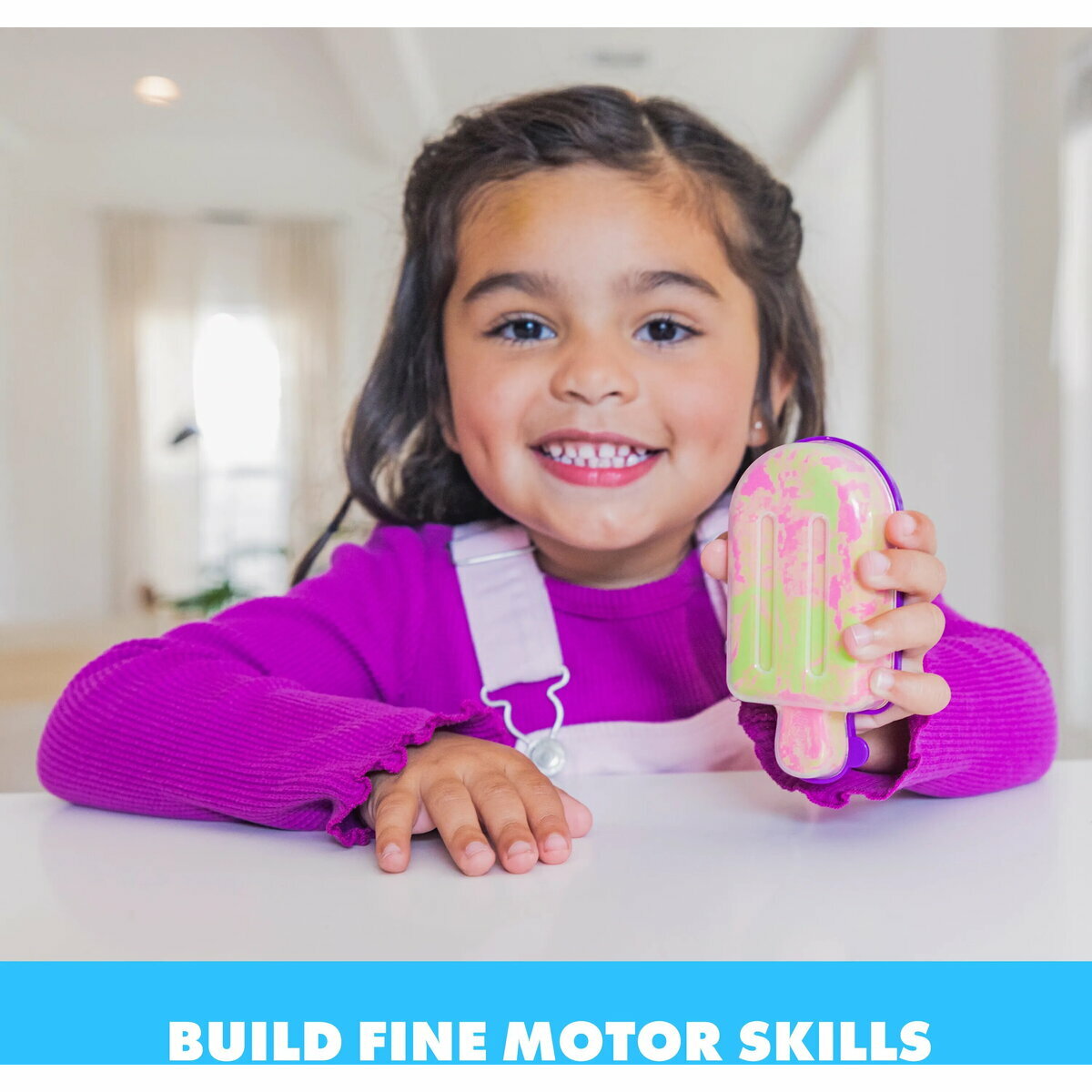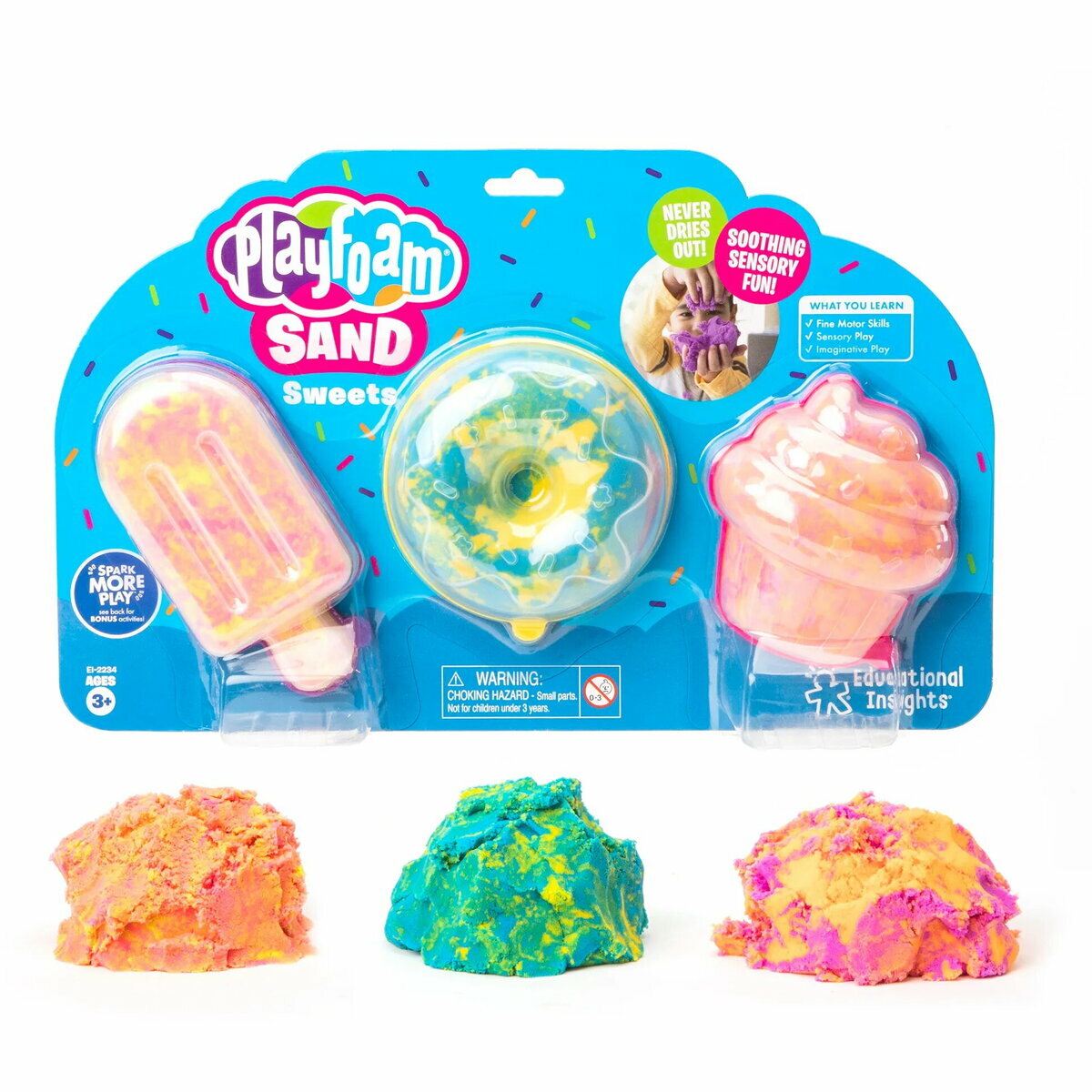 - serviti o joaca senzoriala delicioasa cu acest set de trei forme reutilizabile in forma de bunatati (briosa, inghetata si gogoasa) cu capac pentru o depozitare usoara si trei culori vesele de nisip Playfoam foarte moale