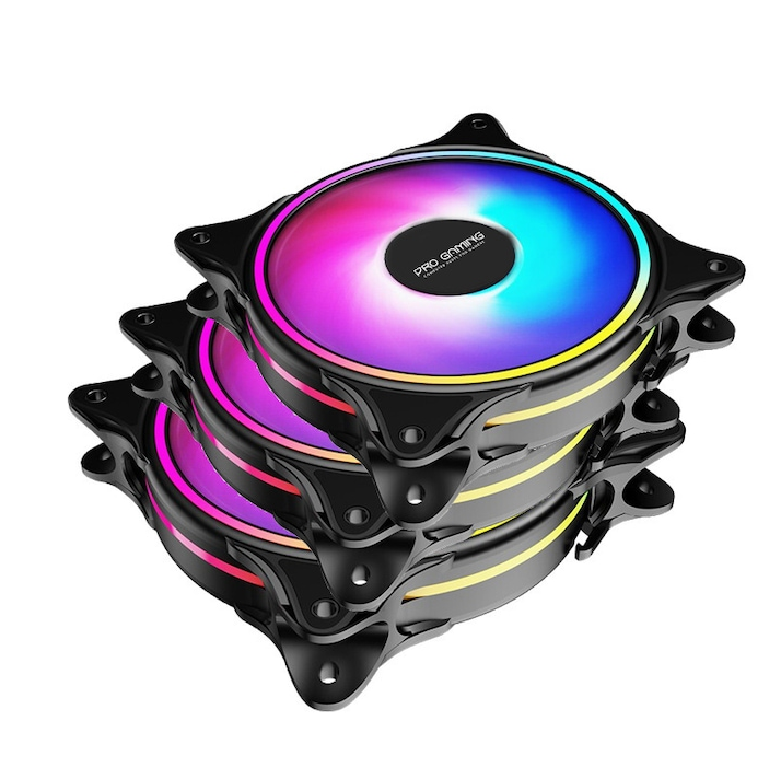 Descriere Set Nou 4 Ventilatoare ARGB Gaming,