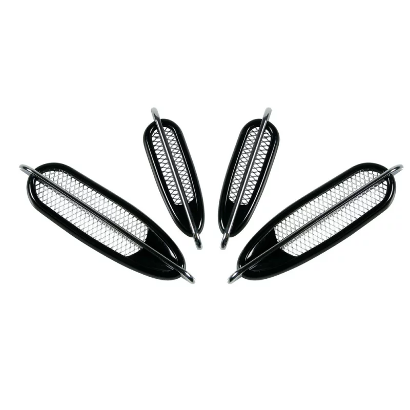 Oferă mașinii un plus de stil cu acest set ornamente priză aer auto cu design sportiv, realizat în finisaj negru-argintiu. Ornamentele simulează prize de aer dinamice și sunt ideale pentru personalizarea exteriorului, fie pe capotă, fie pe lateralele vehiculului. Montajul este simplu și rapid, datorită benzii dublu adezive aplicate pe spate.