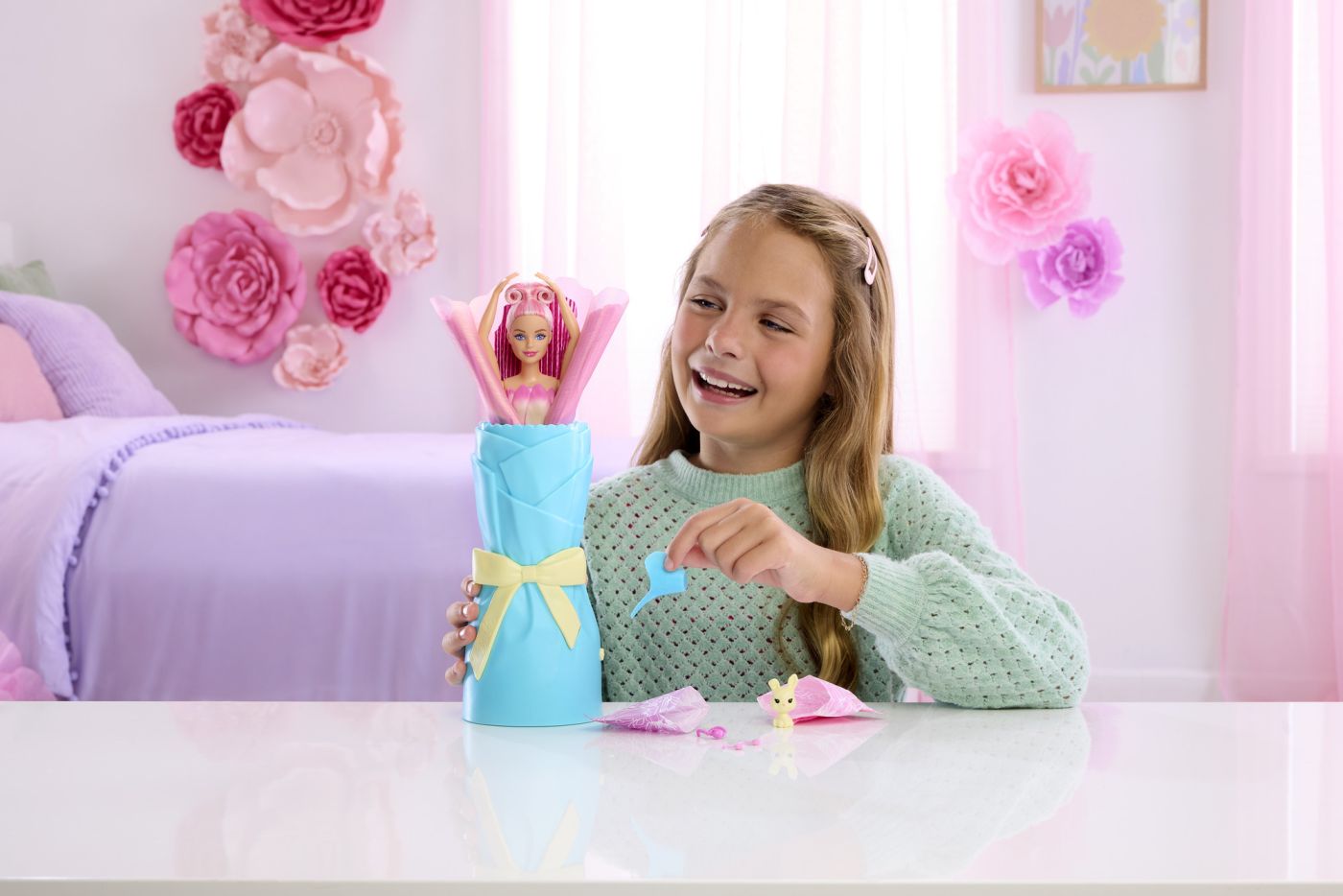 Set păpușă Barbie Petal Pop Lalea Roz cu accesorii surpriză