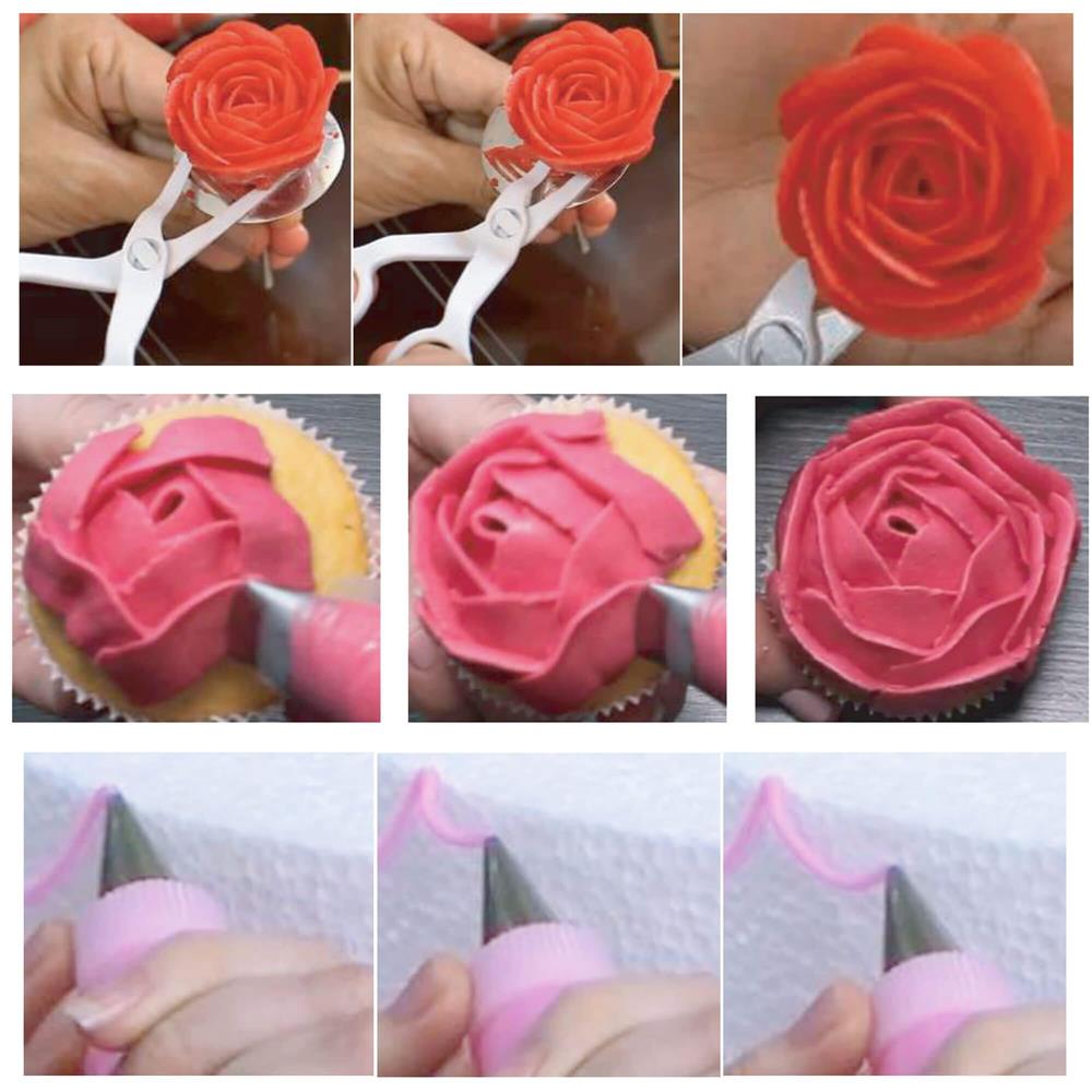 Utilizare: aseaza tortul sau prajitura pe platoul rotativ, aplica crema cu punga de patiserie si alege duiul potrivit pentru modelul dorit. Foloseste spatulele pentru uniformizare si decorul final, iar peria de silicon pentru glazuri sau uns compozitii. Setul este potrivit atat pentru deserturi, cat si pentru preparate sarate cu prezentare creativa.