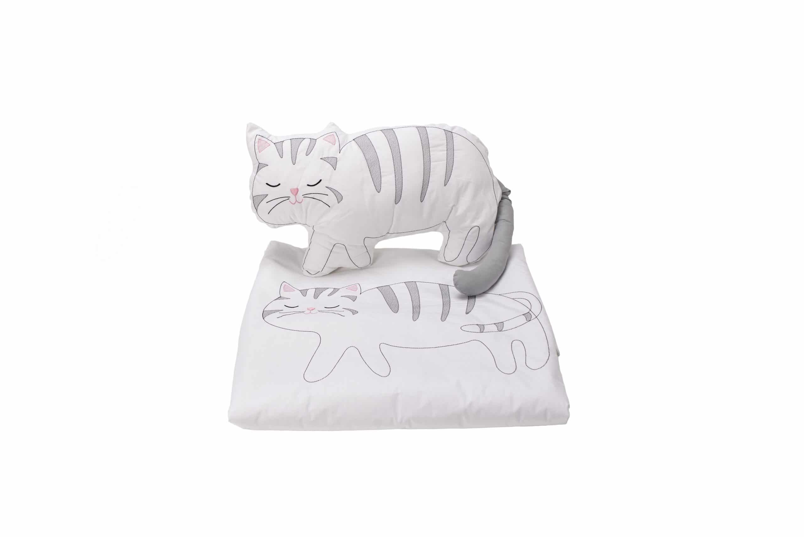 Set paturica brodata 100x110 cm cu perna Pisica pentru bebelusi