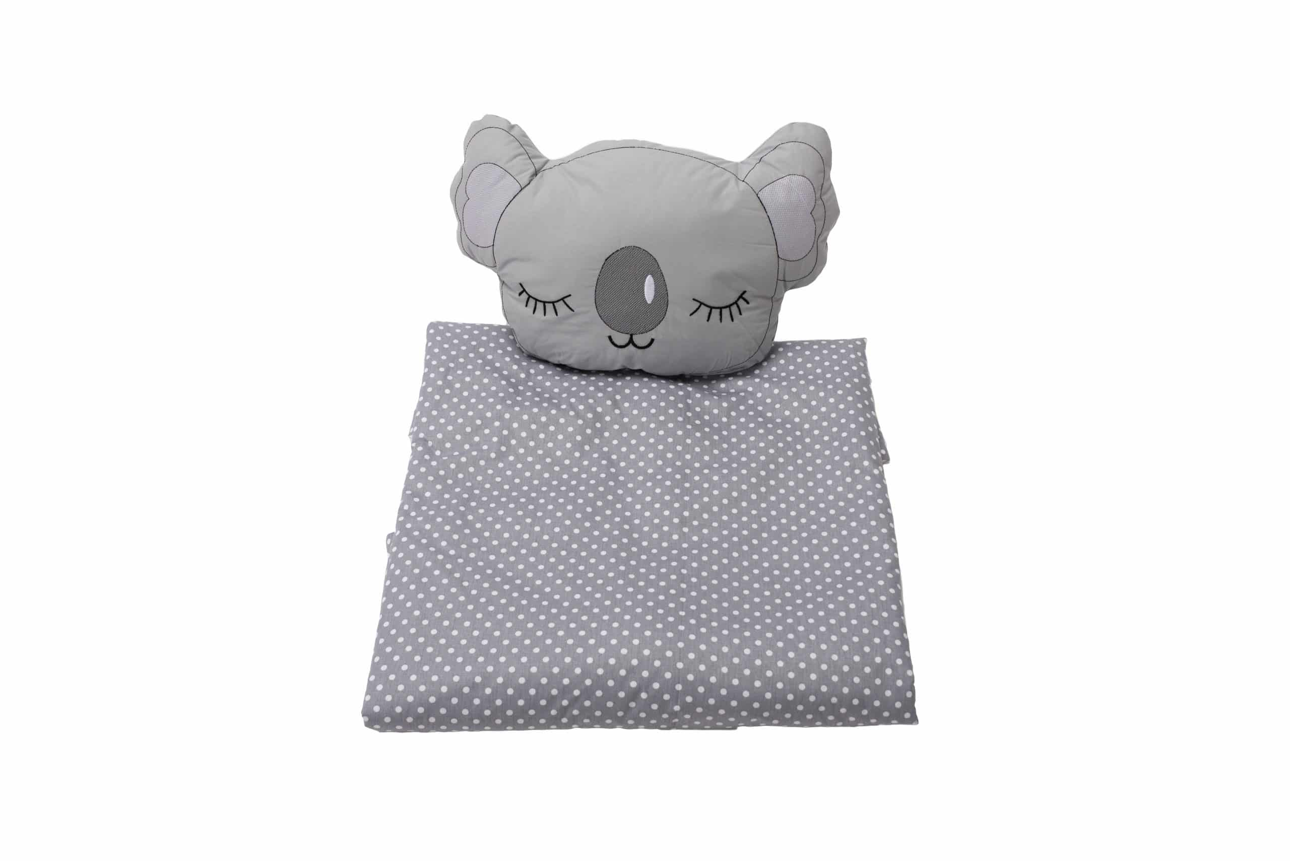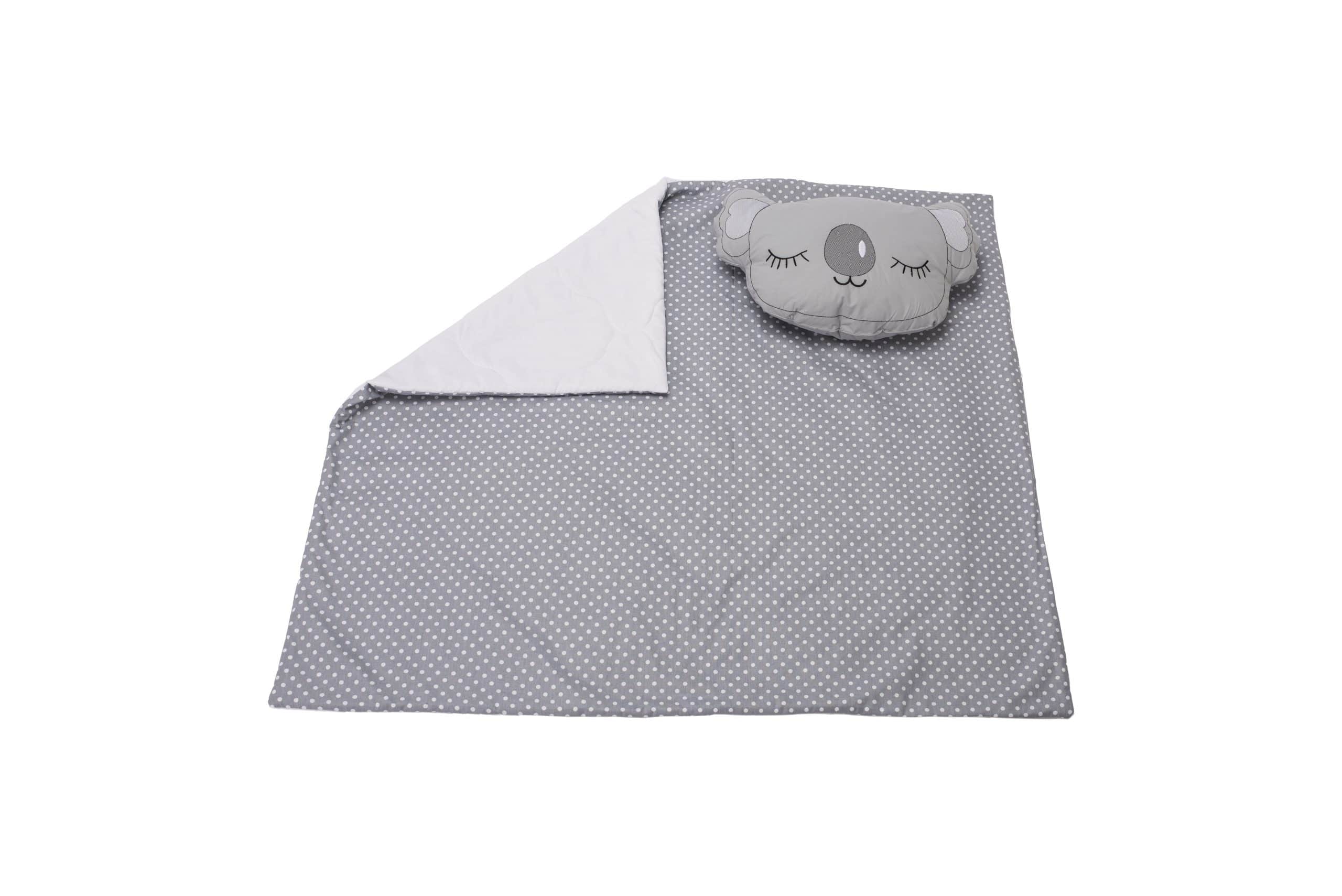 Set paturica brodata 100x110 cm si perna bebe Koala, gri/alb