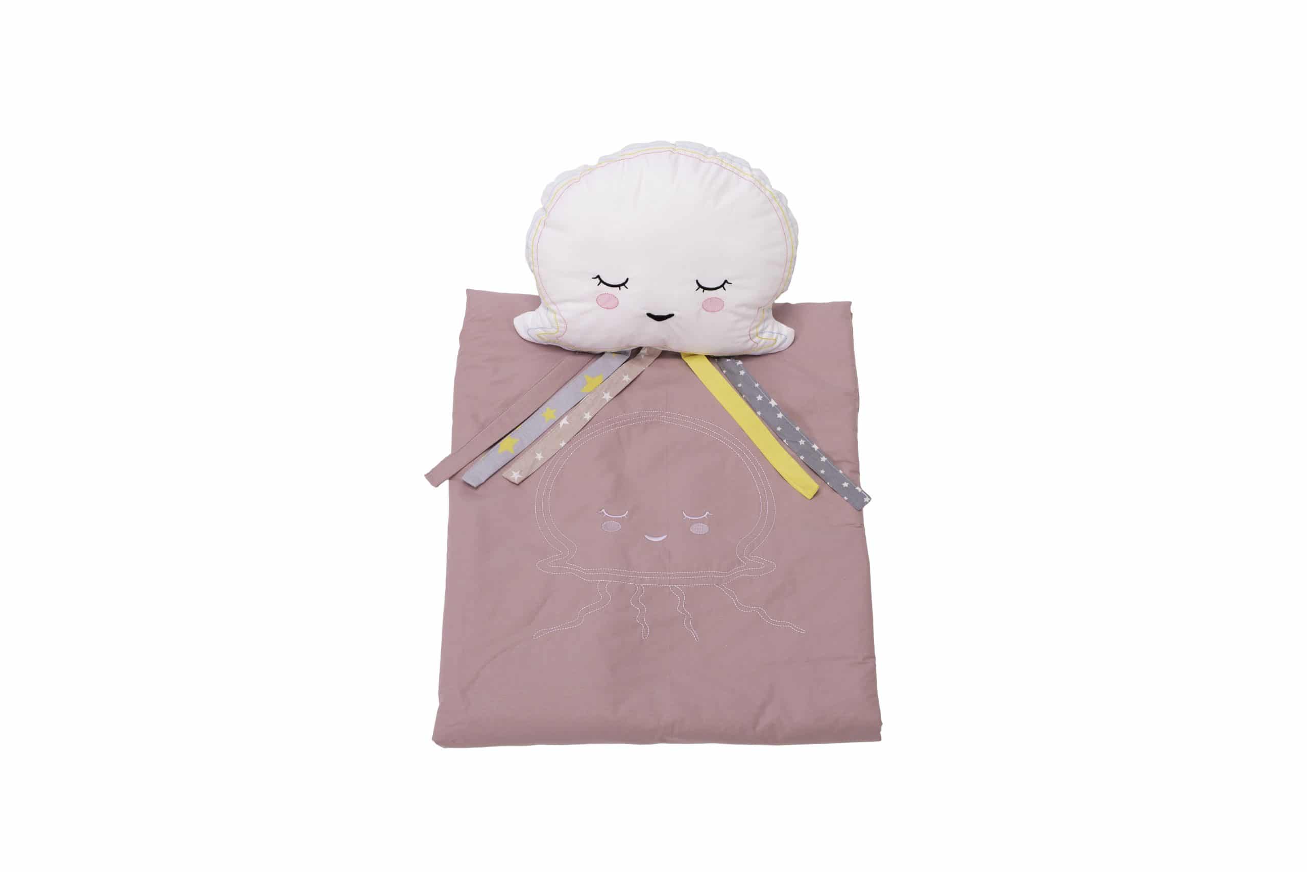 Set paturica pentru bebelusi 100x110 cm cu perna Meduza Roz