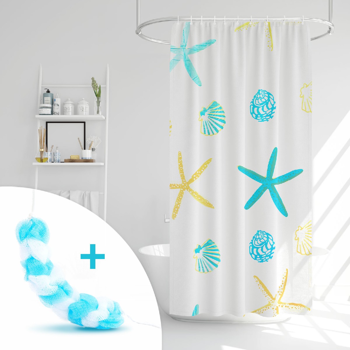 Set perdea de duș cu burete de baie – 180 x 180 cm Best CarHome