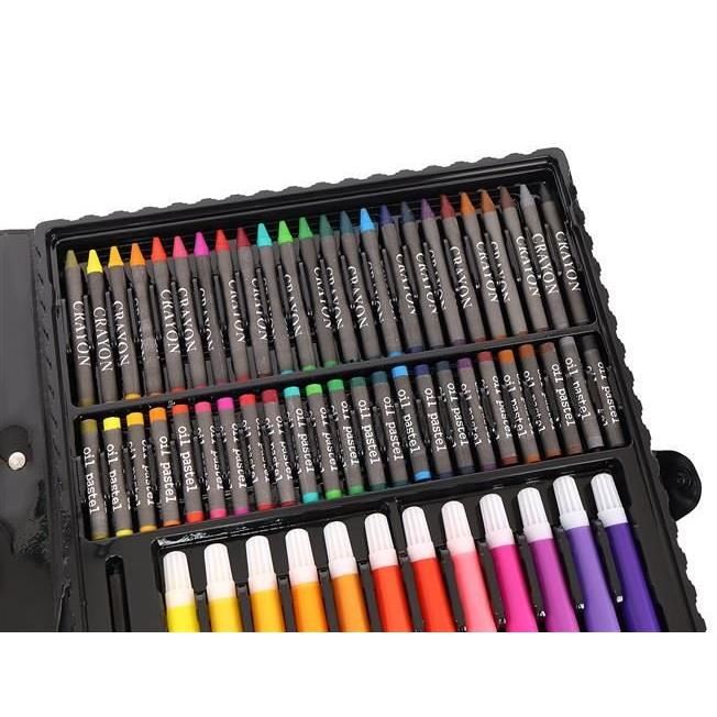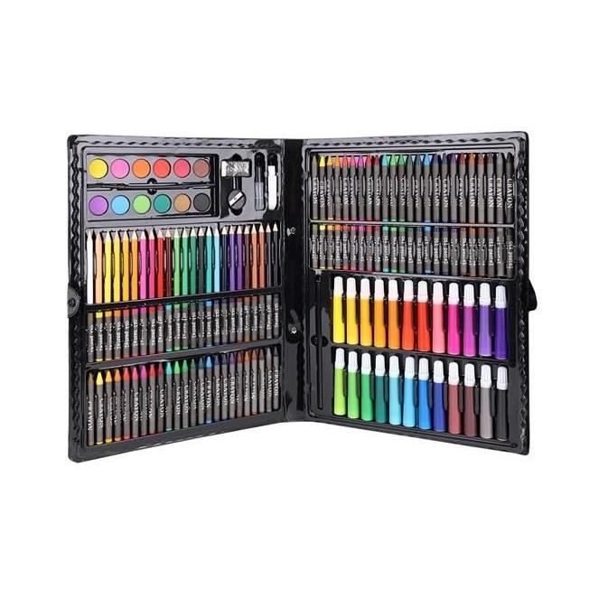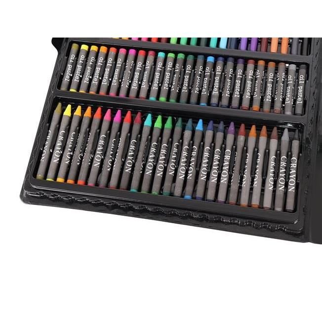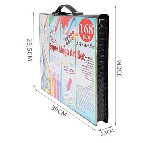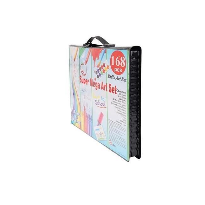 - 168 ELEMENTE - cu ajutorul unei selectii uriase de 24 de creioane colorate, 24 de markere, 48 de pasteluri cu ulei, 48 de pasteluri cerate, 12 vopsele de acuarela, ascutitoare, lipici, corector, radiera, coli A4, putem crea cu usurinta cele mai multe lucrari sofisticate, creative si originale.