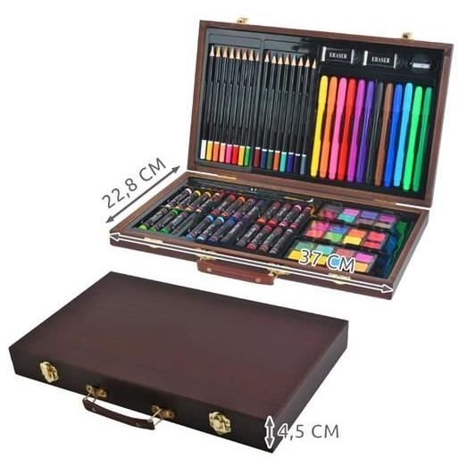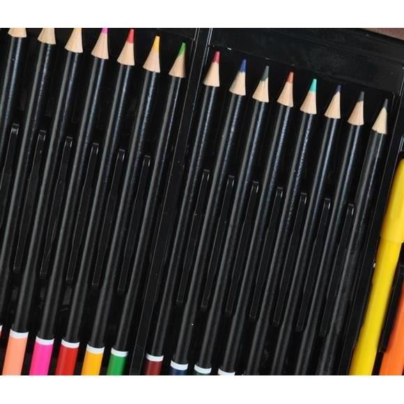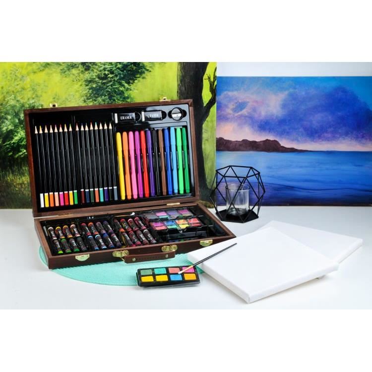 - 81 ELEMENTE - cu ajutorul unei mari selectii de 24 de pasteluri cu ulei, 16 creioane colorate, 24 de vopsele de acuarela, 12 markere, 2 pensule, 2 ascutitoare de creioane, putem crea cu usurinta cele mai sofisticate, creative si originale lucrari.