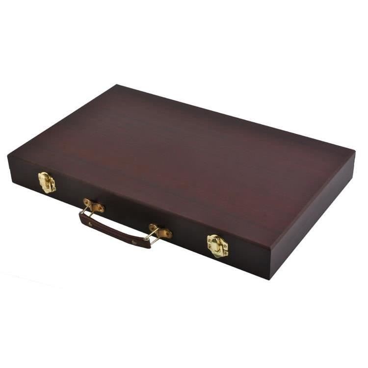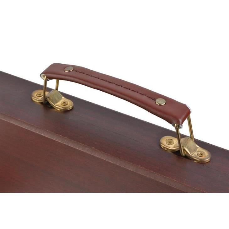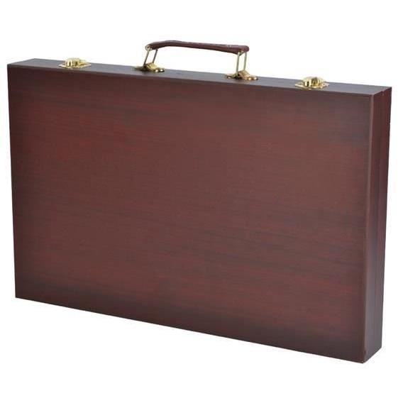 - VALIZA PRACTICA - totul este asezat intr-o valiza eleganta, pliabila, fabricata din lemn, ceea ce ii sporeste valoarea estetica precum si durabilitatea; valiza are un maner durabil, confortabil, din piele, datorita caruia transportul intregului continut este simplu si confortabil; cataramele metalice rezistente garanteaza ca valiza va fi bine inchisa atunci cand o transportati si ca nu va cadea nimic din ea sau nu vei pierde nimic; dupa terminarea ustensilelor originale, poti umple cu succes valiza cu propriile tale accesorii noi.