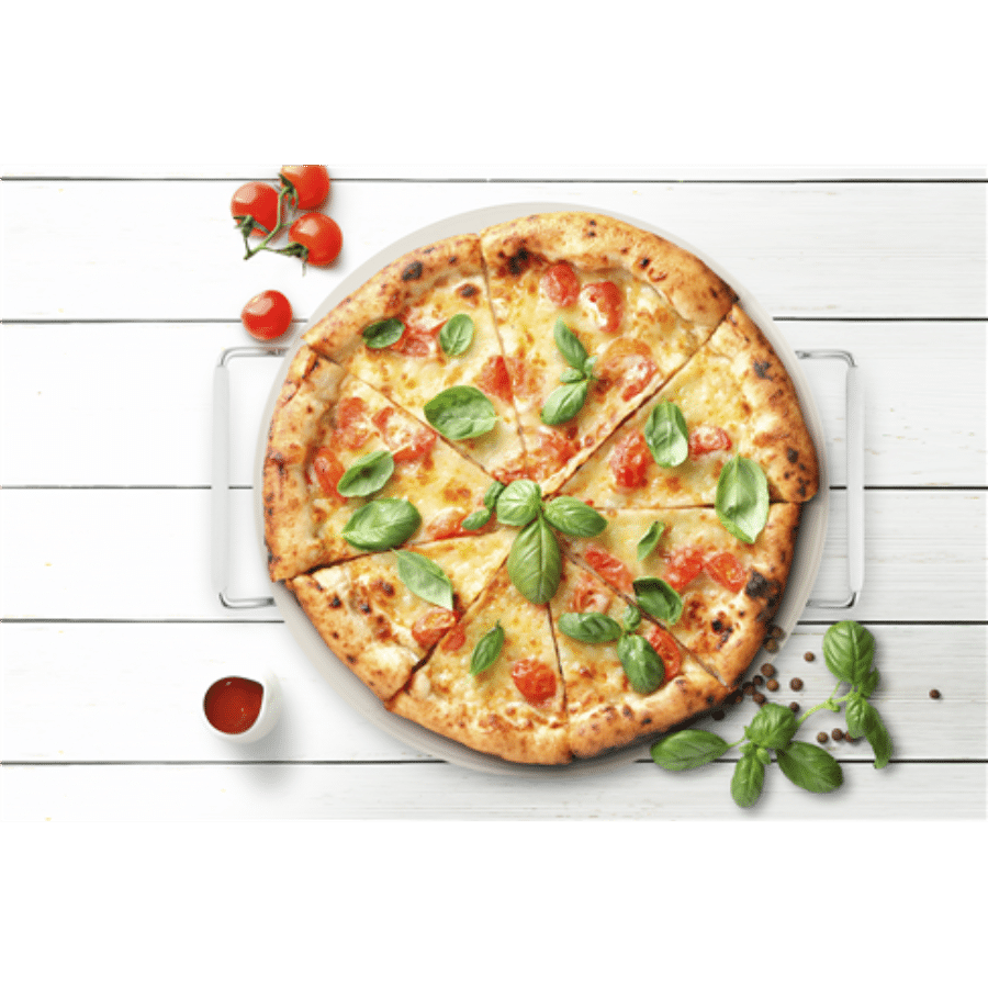 - Setul conține: Piatră de pizza, Suport din inox, Cuțit pentru pizza