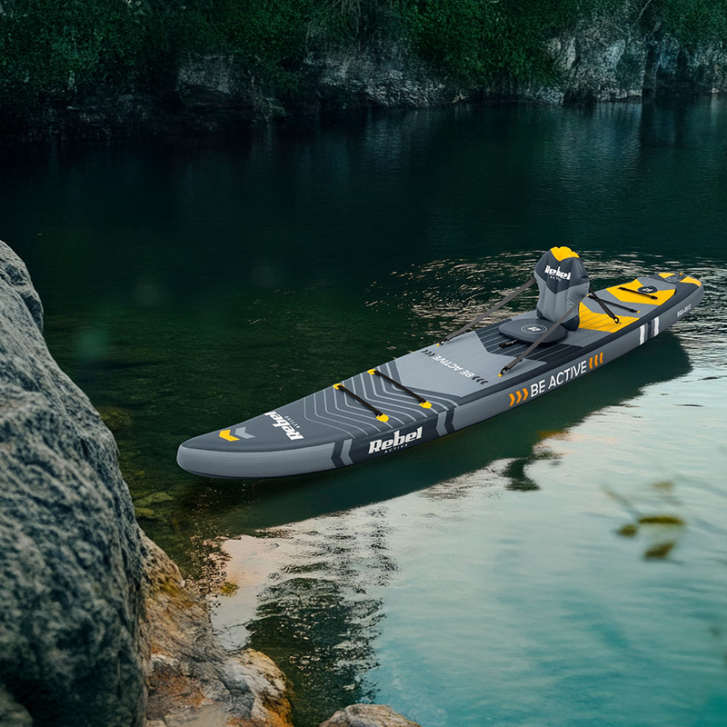 Include: 3 aripioare, lesă, vâslă, scaun de caiac, pompă manuală, geantă de transport, kit de reparații (cheie valvă, petice de reparații, lipici)