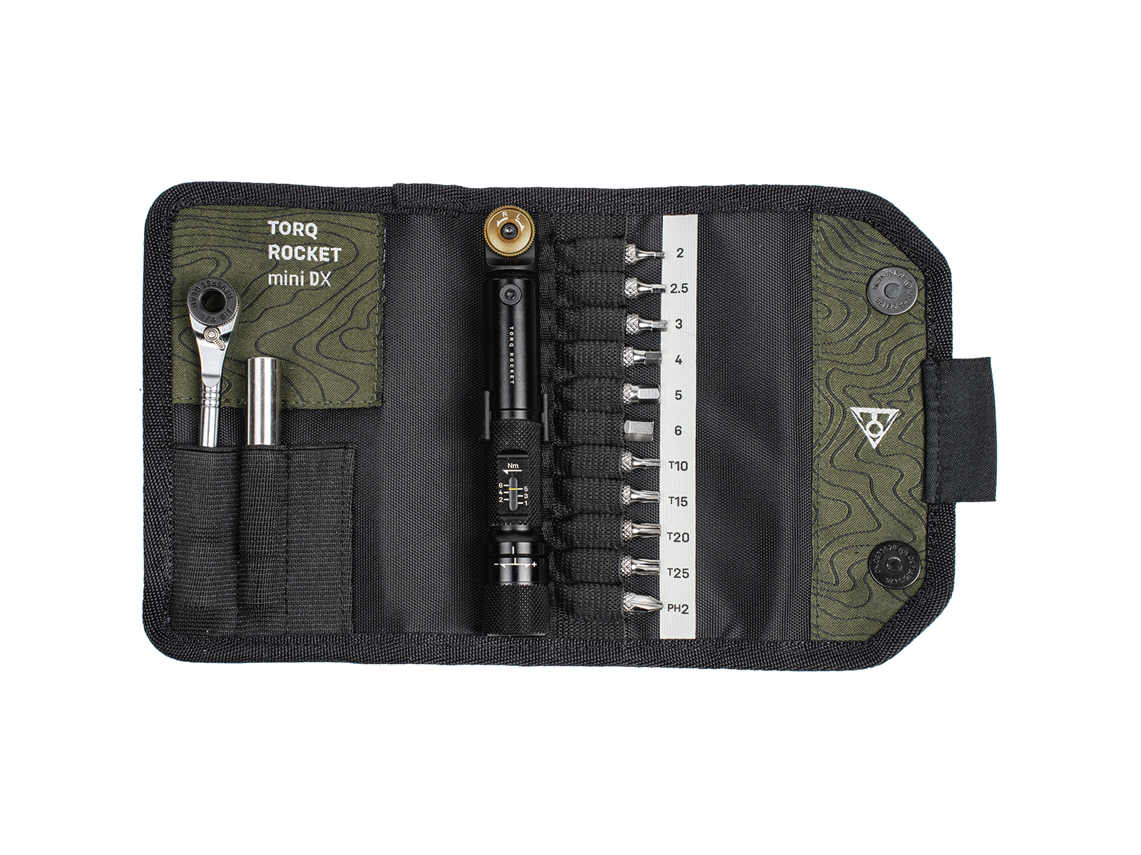 Setul Topeak TORQ ROCKET mini DX este cheia ta portabila pentru montaj precis si complet de scule, intr-un pachet compact suficient de mic pentru buzunarul de tricou. Ofera control total asupra cuplului cu valori presetate intre 1–6 Nm si include o gama variata de biti, perfect pentru reparatii sau reglaje rapide fie acasa, fie in traseu.