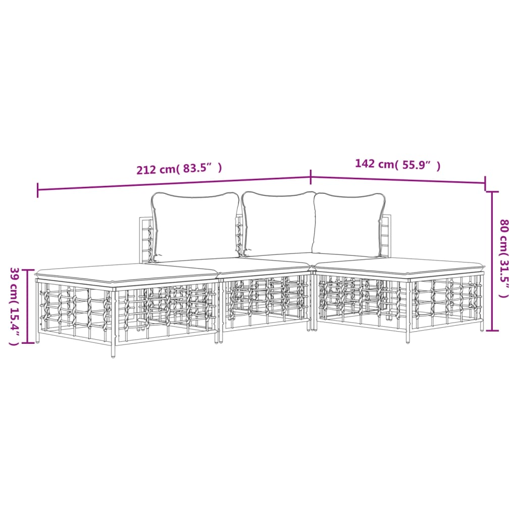 Set șezlonguri de grădină 4 piese cu perne, antracit, poliratan GartenMobel Dekor