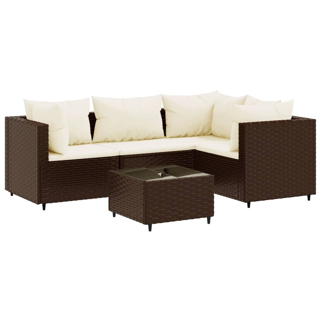 Set șezlonguri de grădină, 5 piese, cu perne, maro, poliratan GartenMobel Dekor