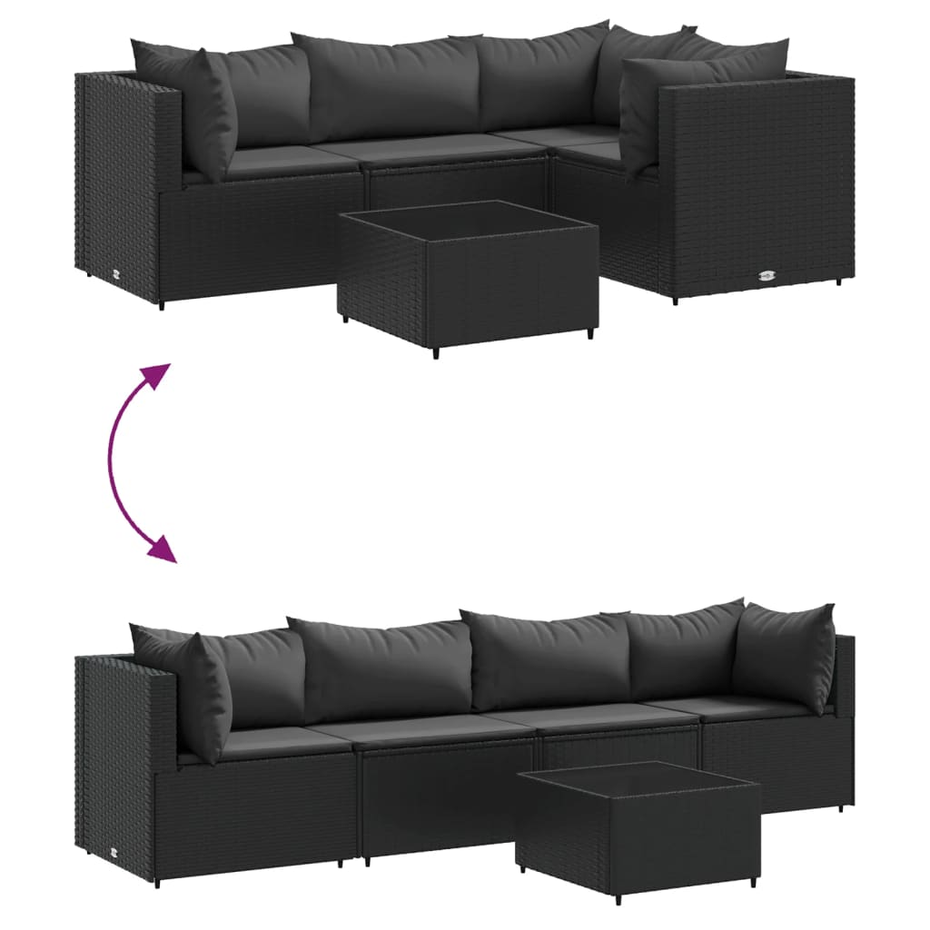 Set șezlonguri de grădină, 5 piese, cu perne, negru, poliratan GartenMobel Dekor