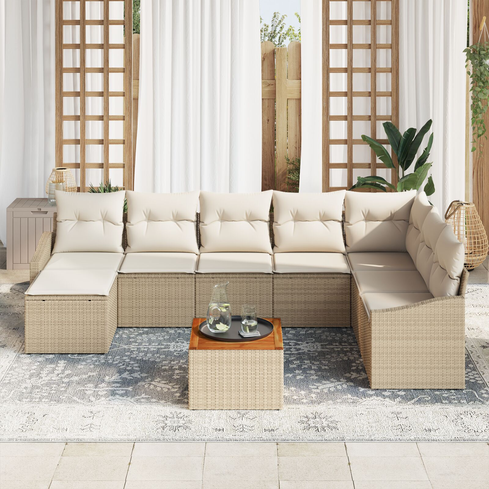 Set Sofa Grădină 9 Piese cu Perne Bej Ratan Poliat Acacia GartenMobel Dekor