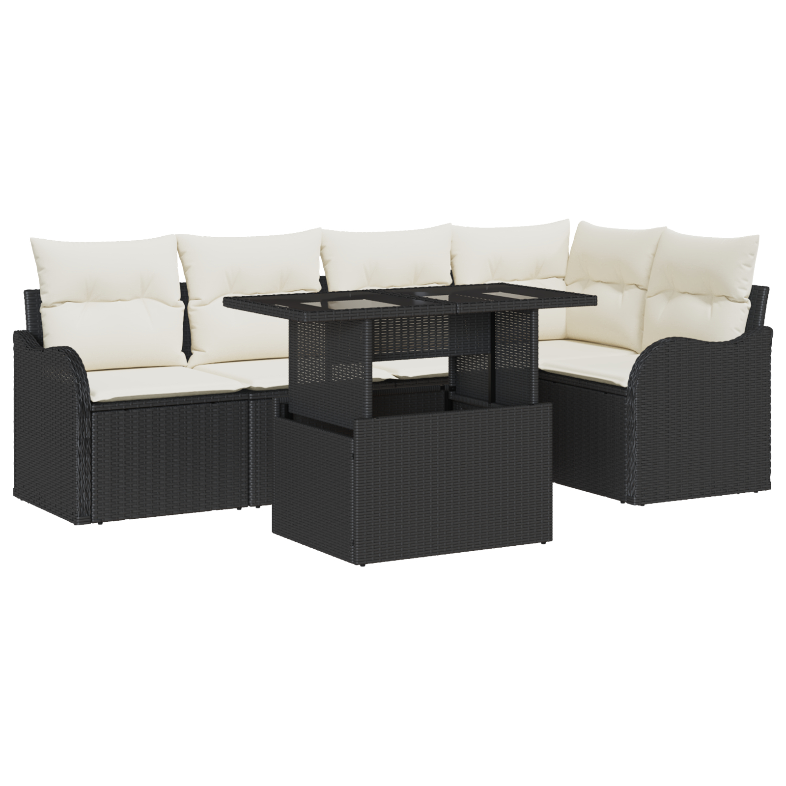 Set Sofă Grădină cu Perne 6 Piese Negru Ratan Poli, Sofă Grădină pentru 2 Persoane cu Perne Negru Ratan Poli GartenMobel Dekor