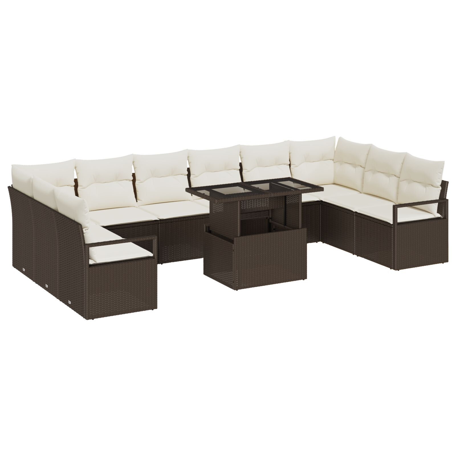 Set Sofă pentru Grădină cu 11 Piese cu Pernuțe Maro din Ratan Poliacetic, Sofă pentru Grădină cu 2 Locuri cu Spațiu de Depozitare și Pernuțe Maro din Ratan Poliacetic GartenMobel Dekor