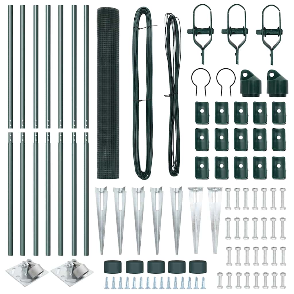 Set stâlpi gard verde din oțel cu plasă 10 x 1 m, exterior