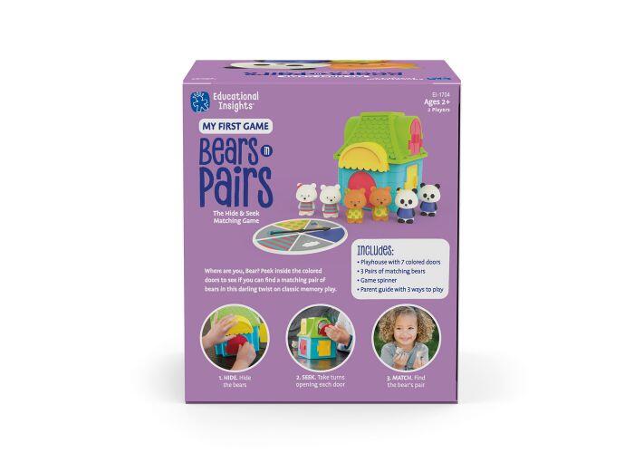 Copiii ascund ursuleții în căsuță, deschid pe rând ușițele colorate și încearcă să găsească perechile corecte. Jocul este ușor de înțeles, nu necesită citire și este potrivit atât pentru acasă, cât și pentru activități educative la grădiniță. Inspirat din principiile STEM, produsul susține învățarea timpurie prin explorare și asociere.