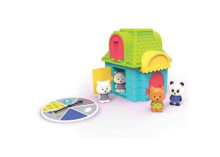 - conținut set: căsuță cu 7 ușițe colorate, 3 perechi de ursuleți, rotiță cu atribute, ghid în limba engleză pentru 3 variante de joc