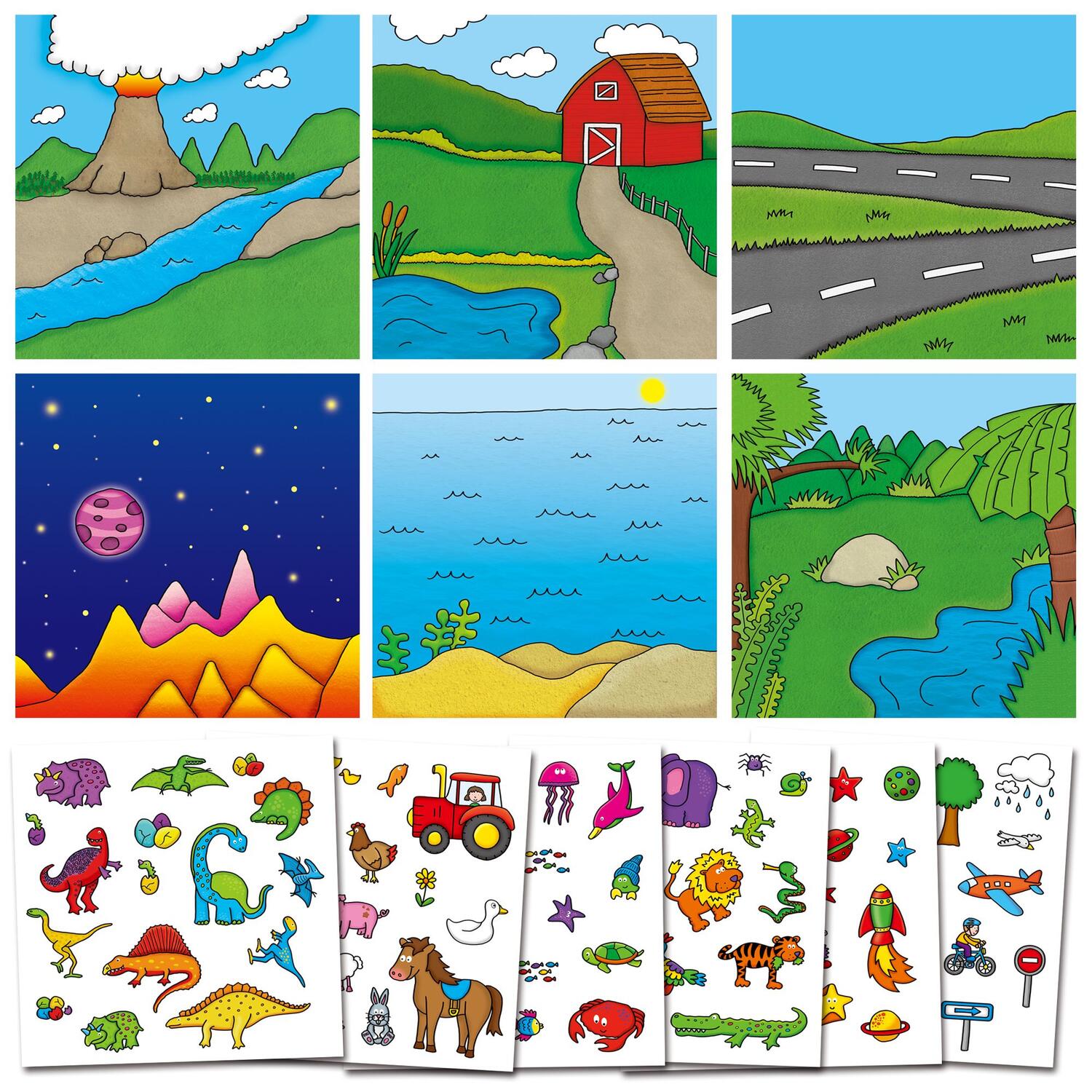 Transforma joaca de zi cu zi intr-o aventura plina de imaginatie cu acest set de stickere reutilizabile pentru copii de la Galt. Micutii pot crea propriile scenarii, pot inventa povesti si pot descoperi lumea prin joaca, folosind 100 de stickere reutilizabile si 6 planse colorate cu decoruri diferite.