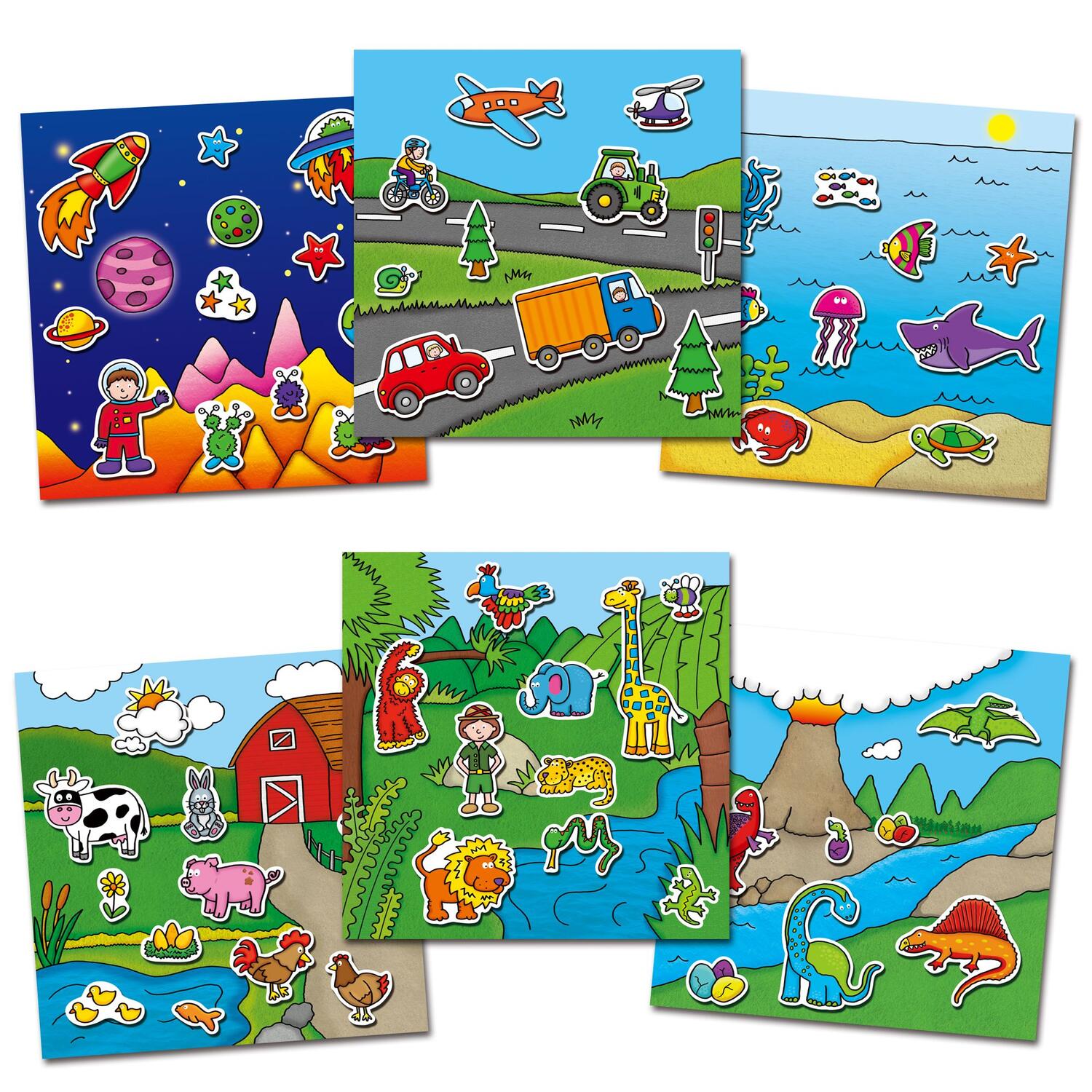 Acest set creativ copii 3 ani+ este ideal pentru dezvoltarea limbajului, a vocabularului, a coordonarii mana-ochi si a indemanarii. Stickerele din vinil sunt usor de prins, de mutat si de refolosit, astfel incat cei mici se pot bucura de ore intregi de activitati educative si distractive.
